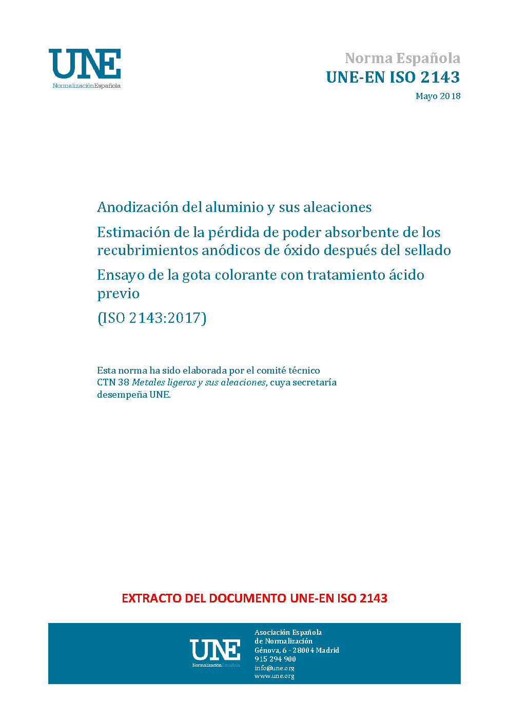 Anodizing of aluminium and its alloys - Estimation of loss of absorptive power of anodic oxidation coatings after sealing - Dye-spot test with prior acid treatment (ISO 2143:2017)