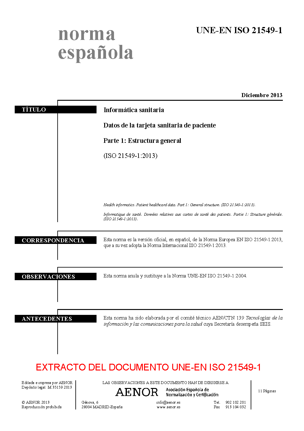 | Publisher | Asociacion Espanola de Normalizacion y Certificacion (AENOR) |