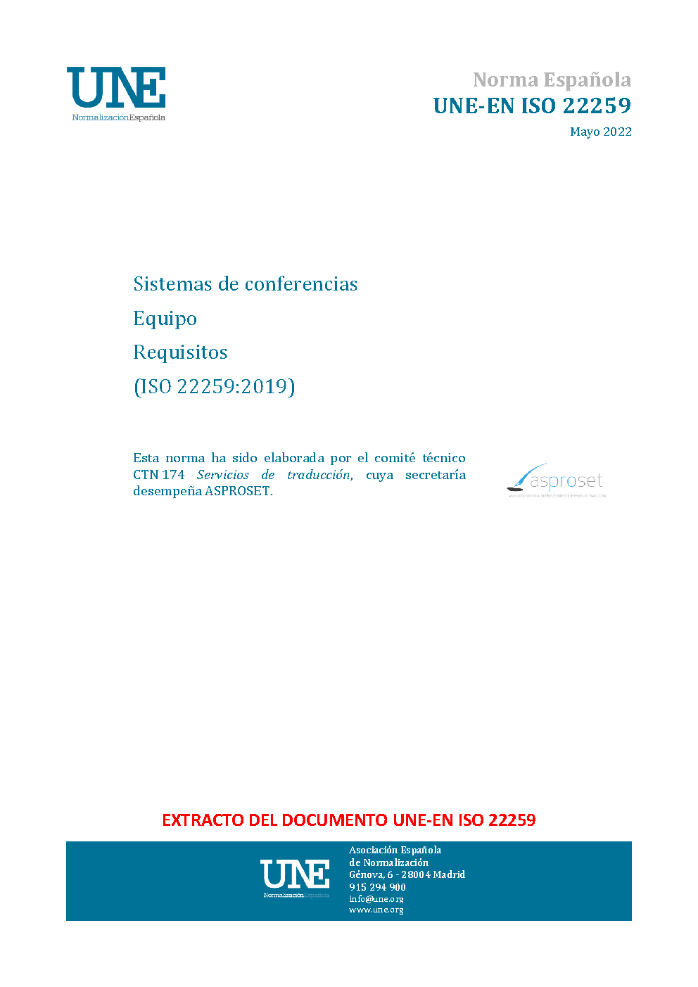 | Publisher | Asociacion Espanola de Normalizacion y Certificacion (AENOR) |