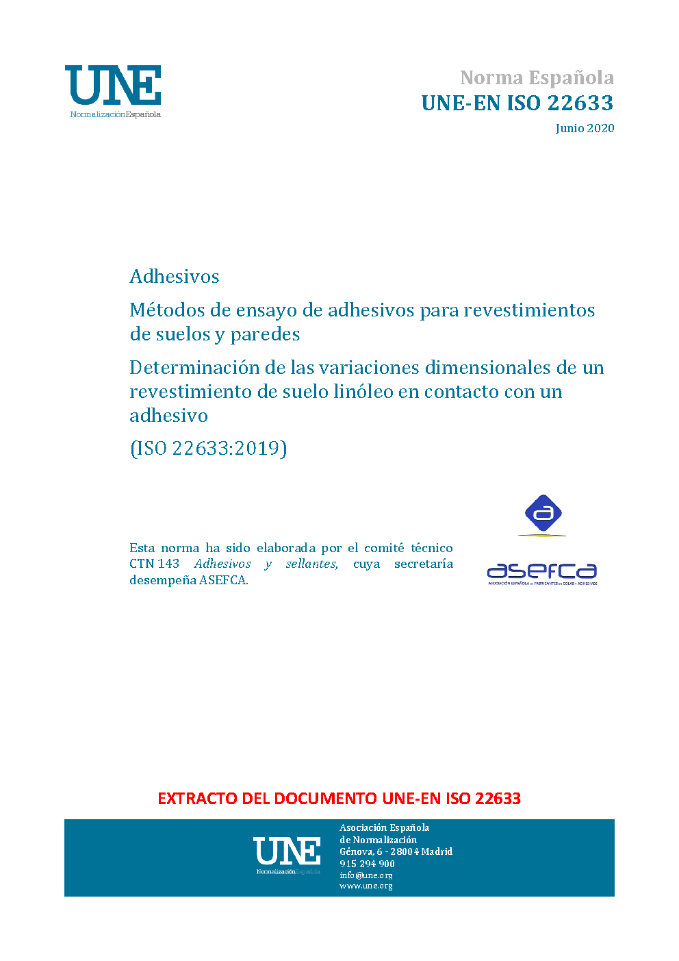 Adhesives - Test methods for adhesives for floor coverings and wall coverings - Determination of dimensional changes of a linoleum floor covering in contact with an adhesive (ISO 22633:2019)