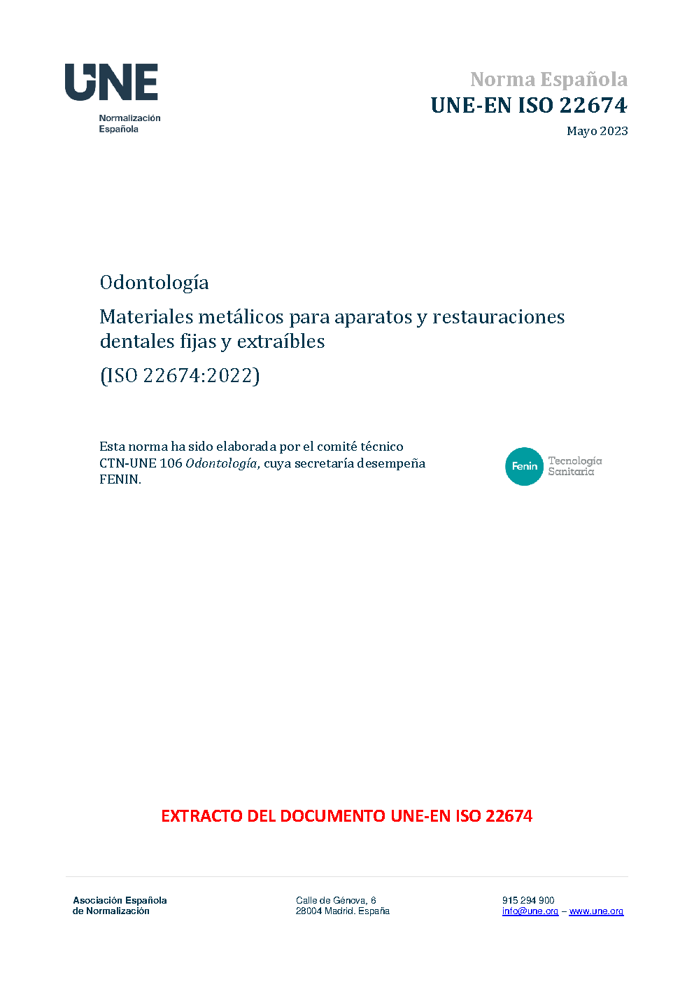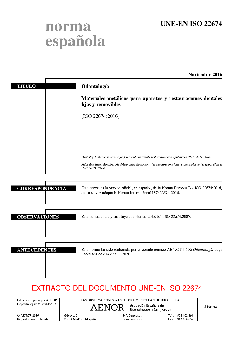 UNE-EN ISO 22674:2016