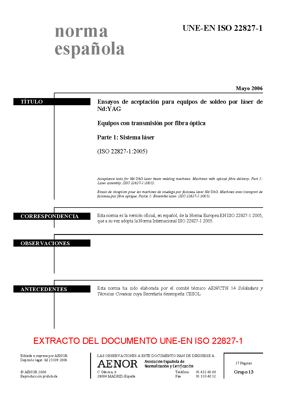 | Publisher | Asociacion Espanola de Normalizacion y Certificacion (AENOR) |