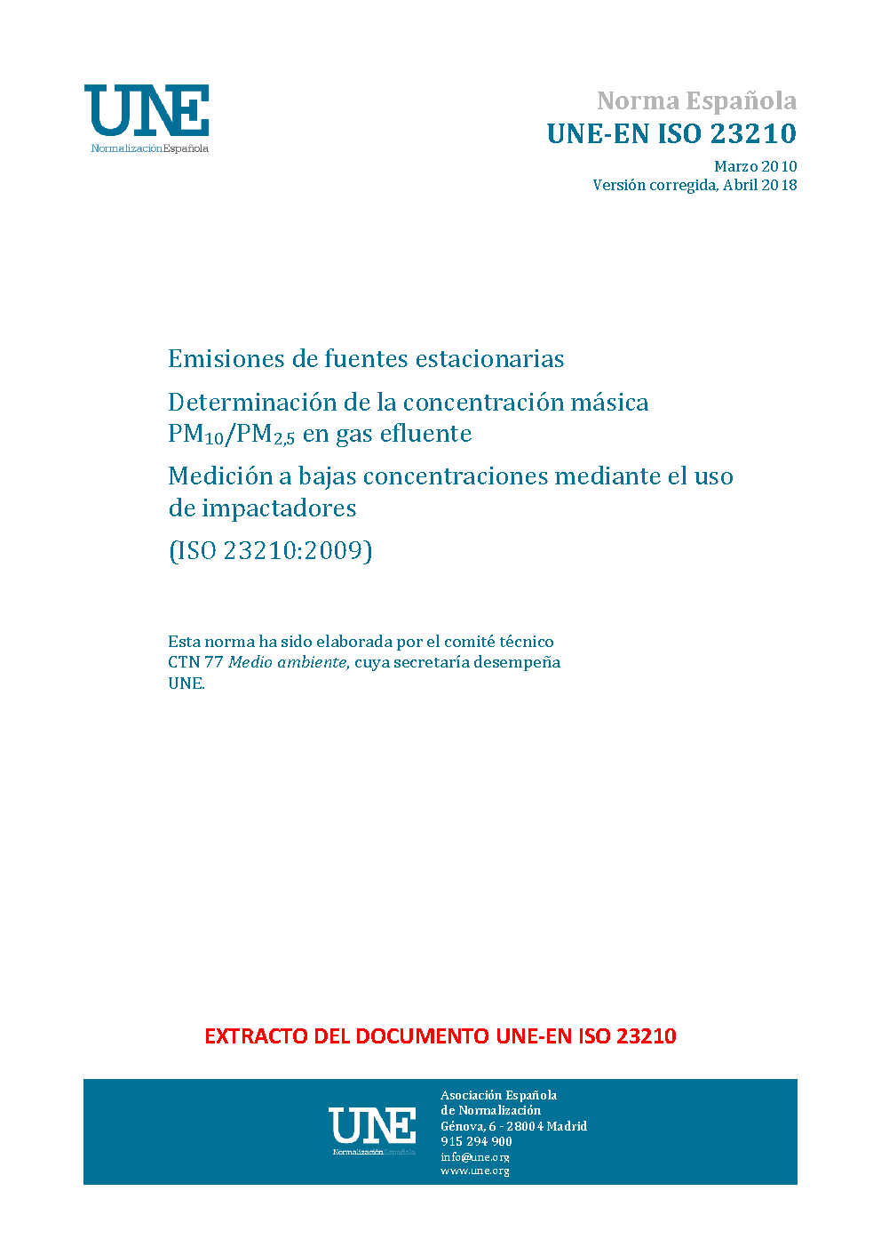 Stationary source emissions - Determination of PM10/PM2,5 mass concentration in flue gas - Measurement at low concentrations by use of impactors (ISO 23210:2009)