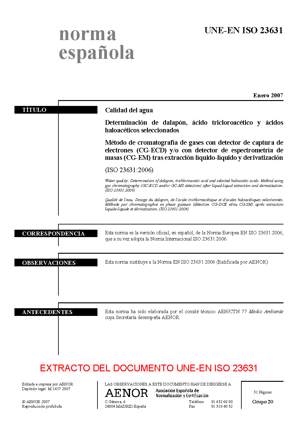 | Publisher | Asociacion Espanola de Normalizacion y Certificacion (AENOR) |