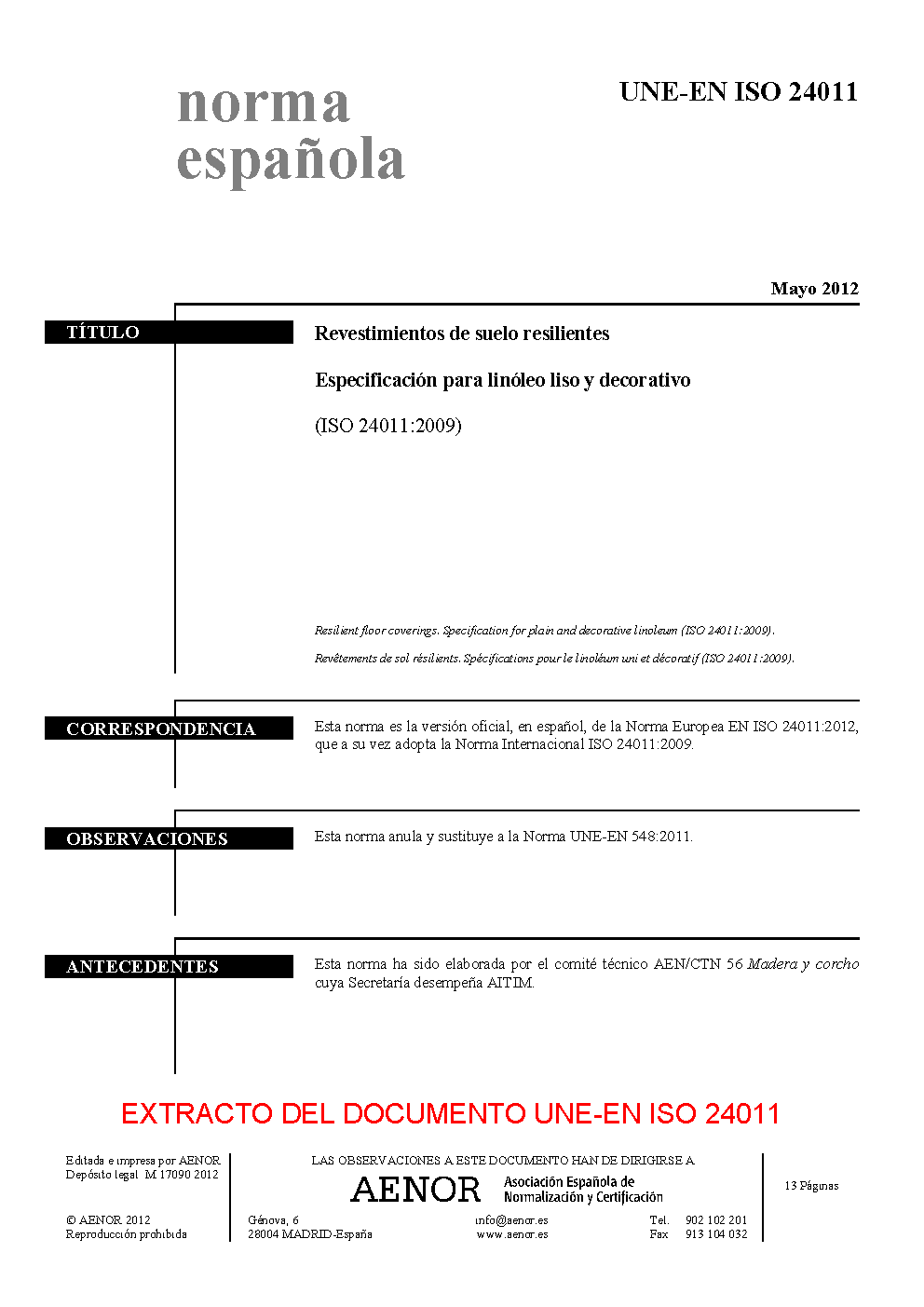 | Publisher | Asociacion Espanola de Normalizacion y Certificacion (AENOR) |