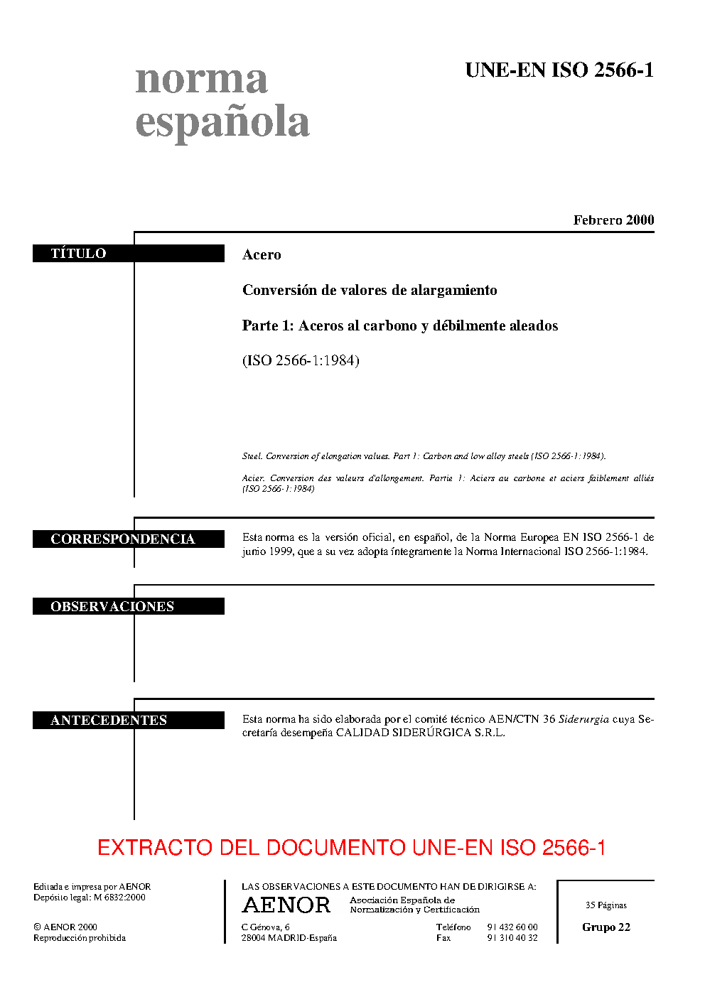 | Publisher | Asociacion Espanola de Normalizacion y Certificacion (AENOR) |