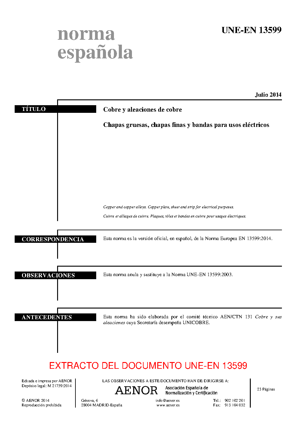 | Publisher | Asociacion Espanola de Normalizacion y Certificacion (AENOR) |