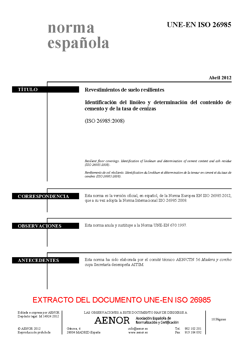 | Publisher | Asociacion Espanola de Normalizacion y Certificacion (AENOR) |
