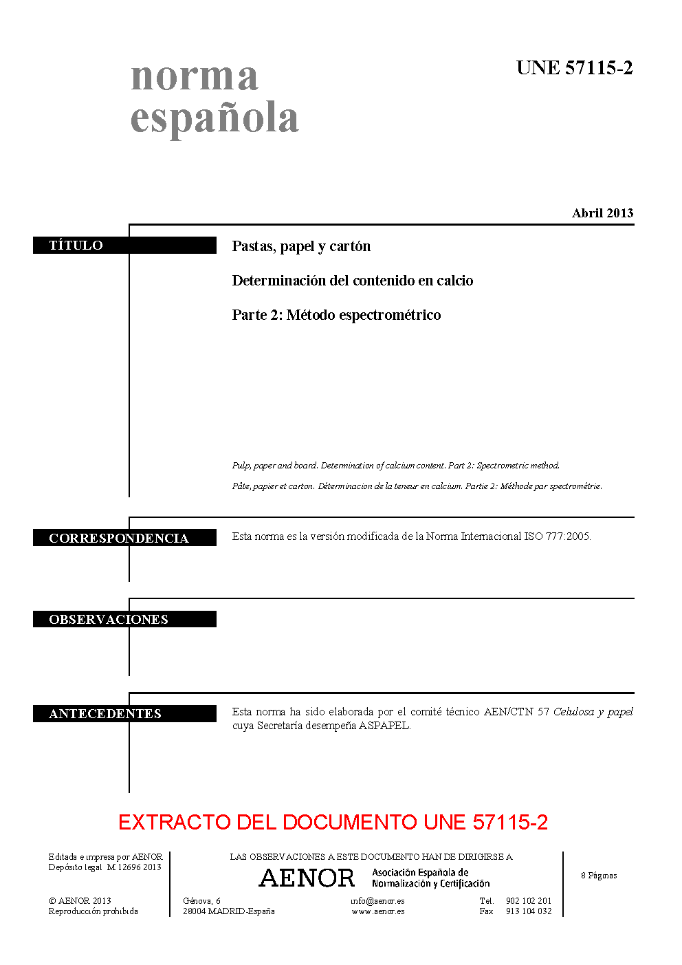 | Publisher | Asociacion Espanola de Normalizacion y Certificacion (AENOR) |