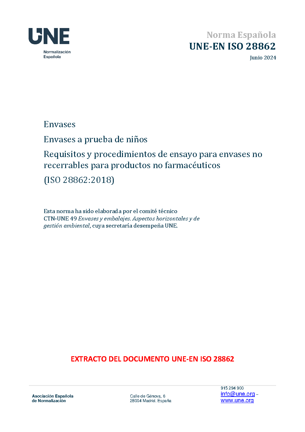 Packaging - Child-resistant packaging - Requirements and testing procedures for non-reclosable packages for non-pharmaceutical products (ISO 28862:2018).