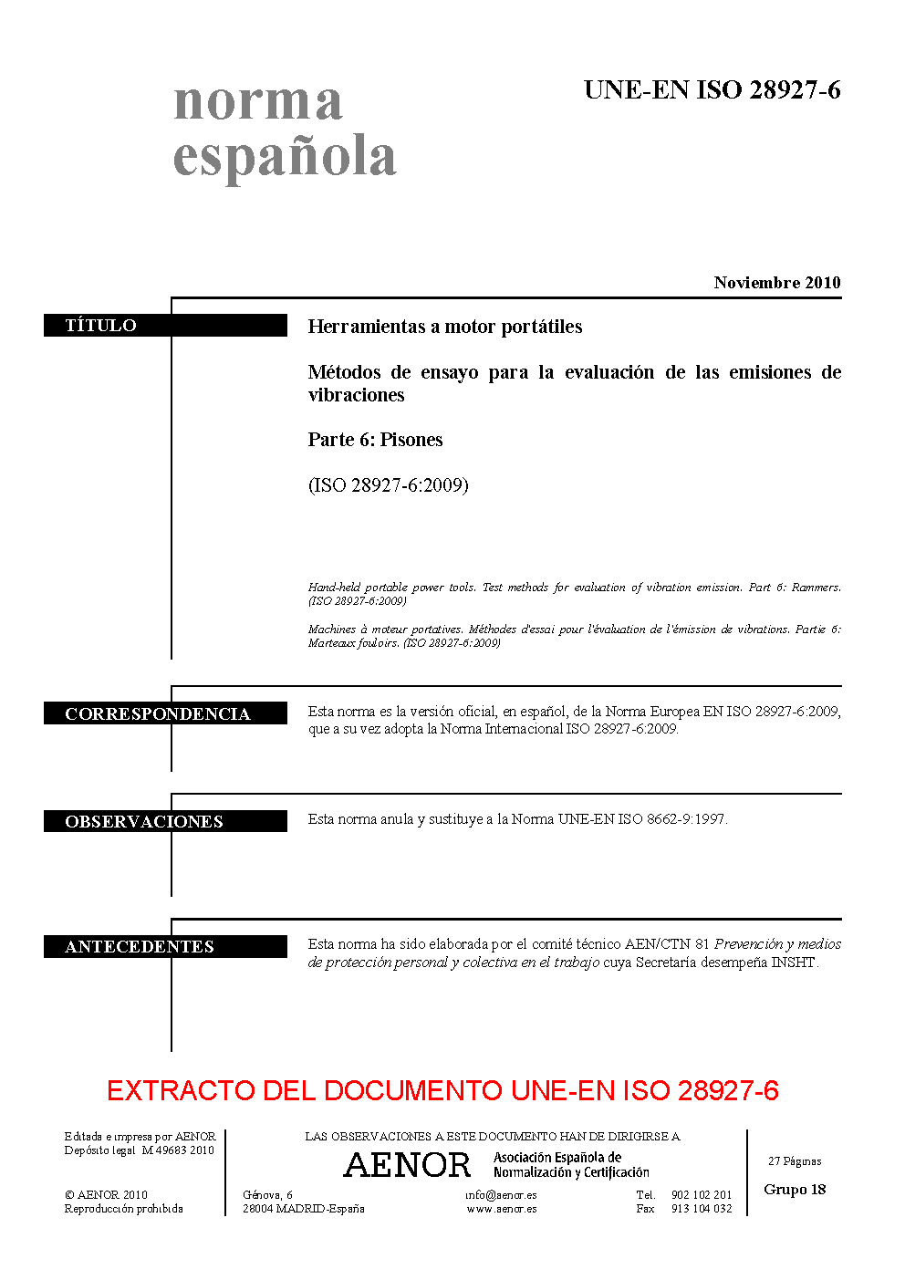 | Publisher | Asociacion Espanola de Normalizacion y Certificacion (AENOR) |