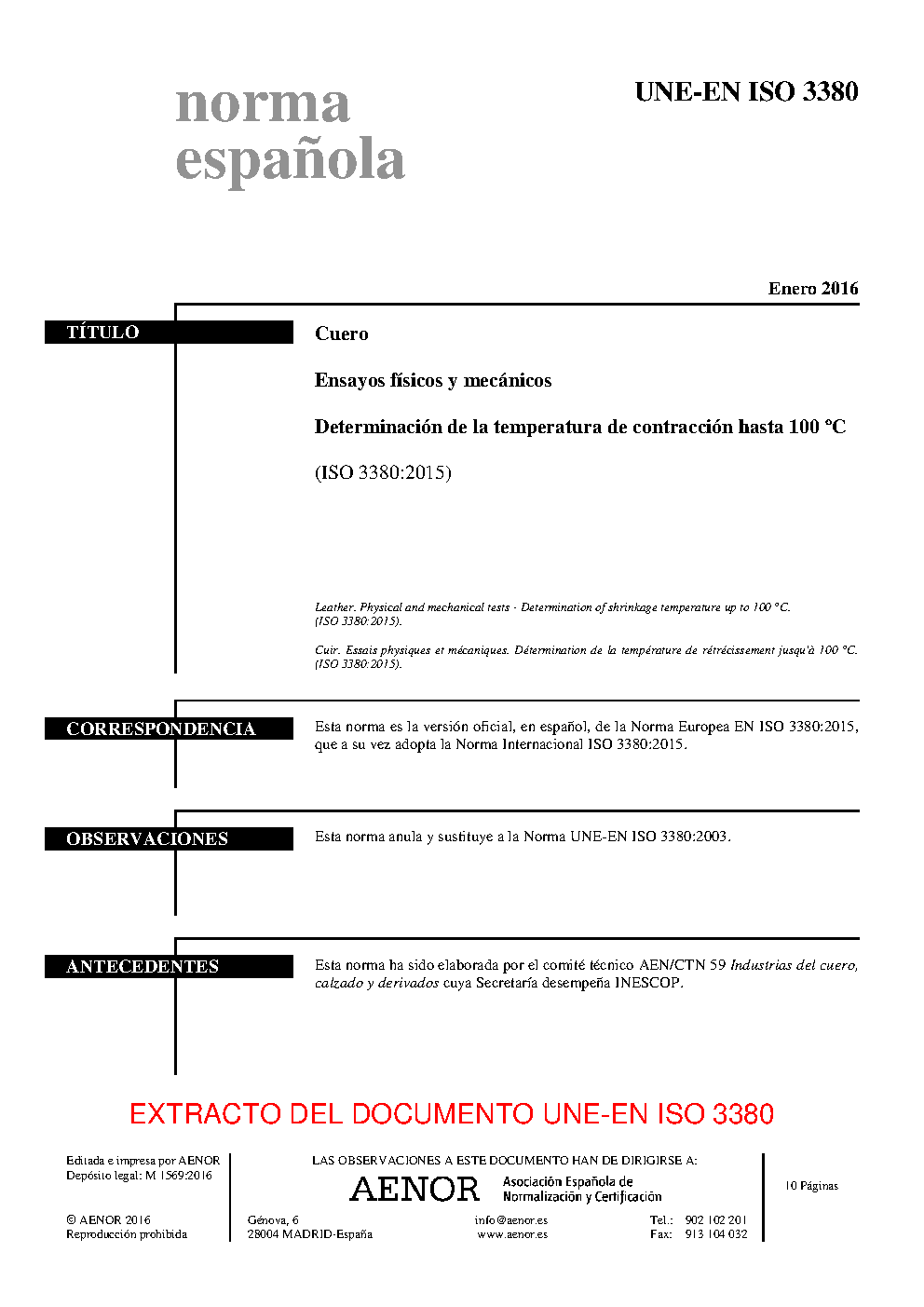 Leather - Physical and mechanical tests - Determination of shrinkage temperature up to 100 degrees C (ISO 3380:2002)