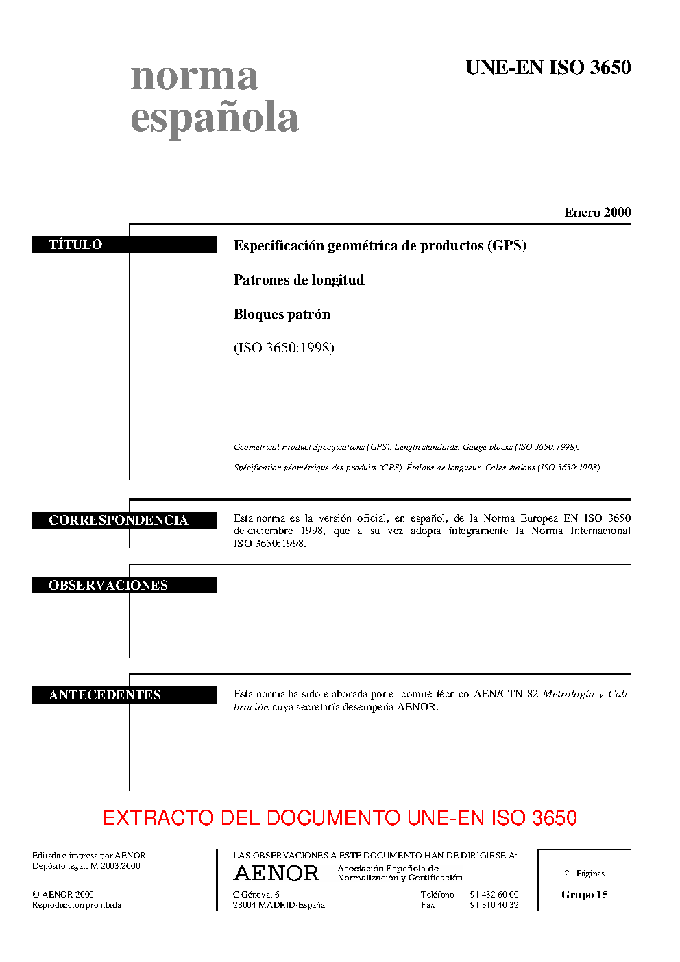 GEOMETRICAL PRODUCT SPECIFICATION (GPS). LENGTH STANDARDS. GAUGE BLOCKS (ISO 3650:1998)