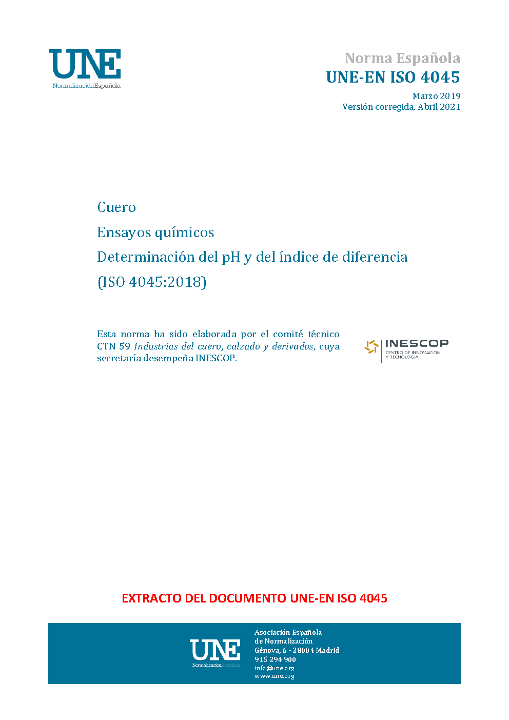 Leather - Chemical tests - Determination of pH (ISO 4045:2008)