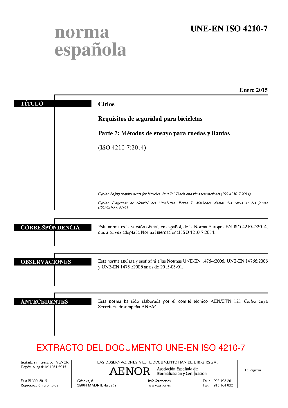 | Publisher | Asociacion Espanola de Normalizacion y Certificacion (AENOR) |