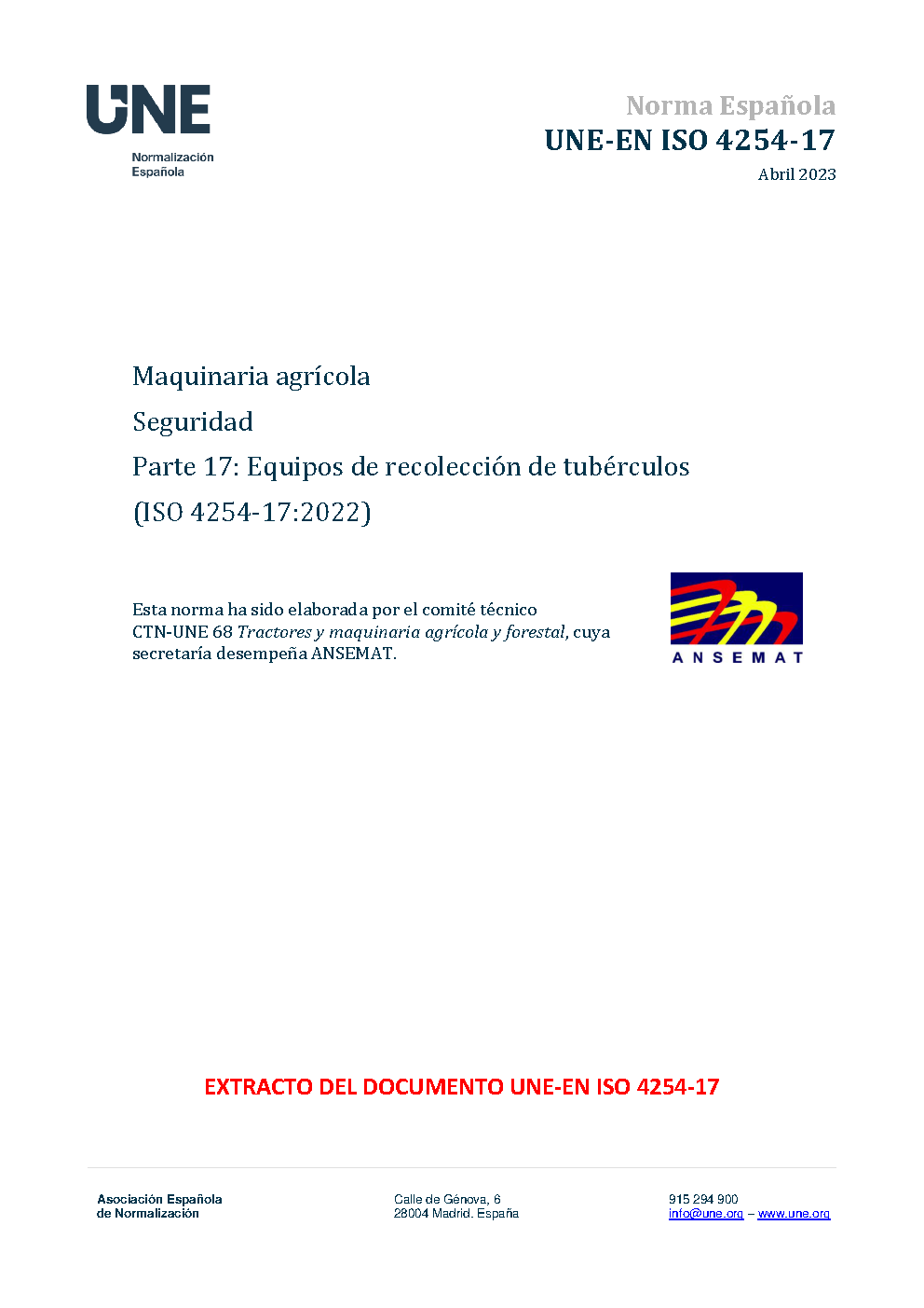 Agricultural machinery - Safety - Part 17: Root crop harvesters (ISO 4254-17:2022)