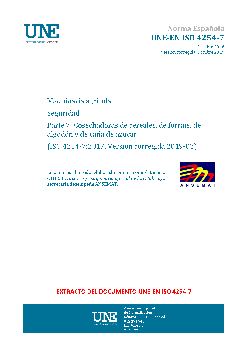 Agricultural machinery - Safety - Part 7: Combine harvesters, forage harvesters, cotton harvesters and sugar cane harversters (ISO 4254-7:2017, Corrected version 2019-03)