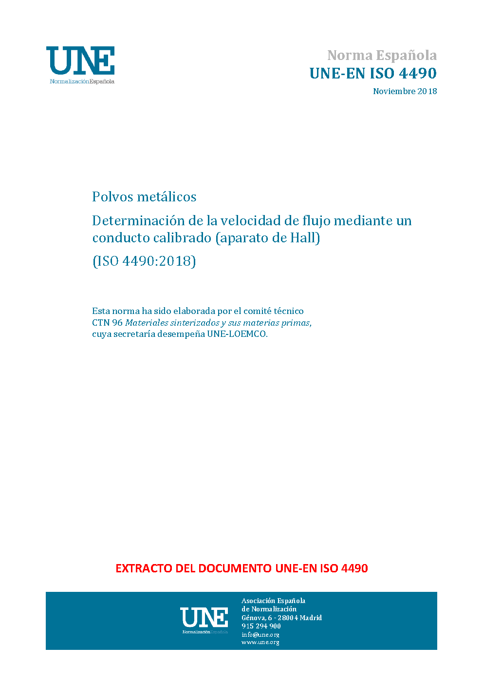 Metallic powders - Determination of flow rate by means of a calibrated funnel (Hall flowmeter) (ISO 4490:2018)