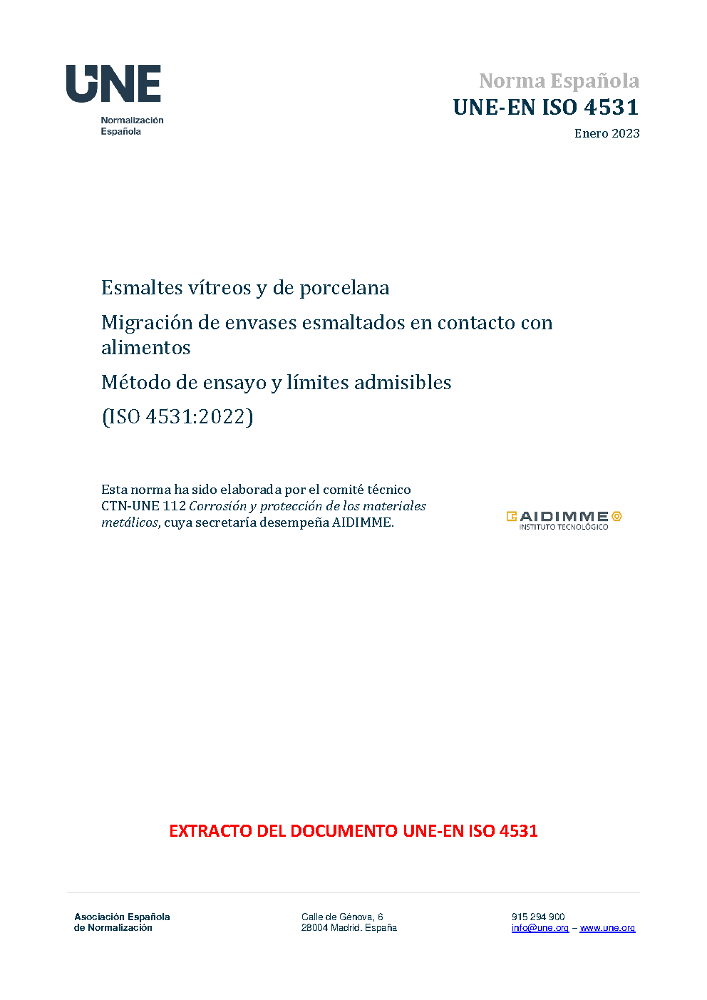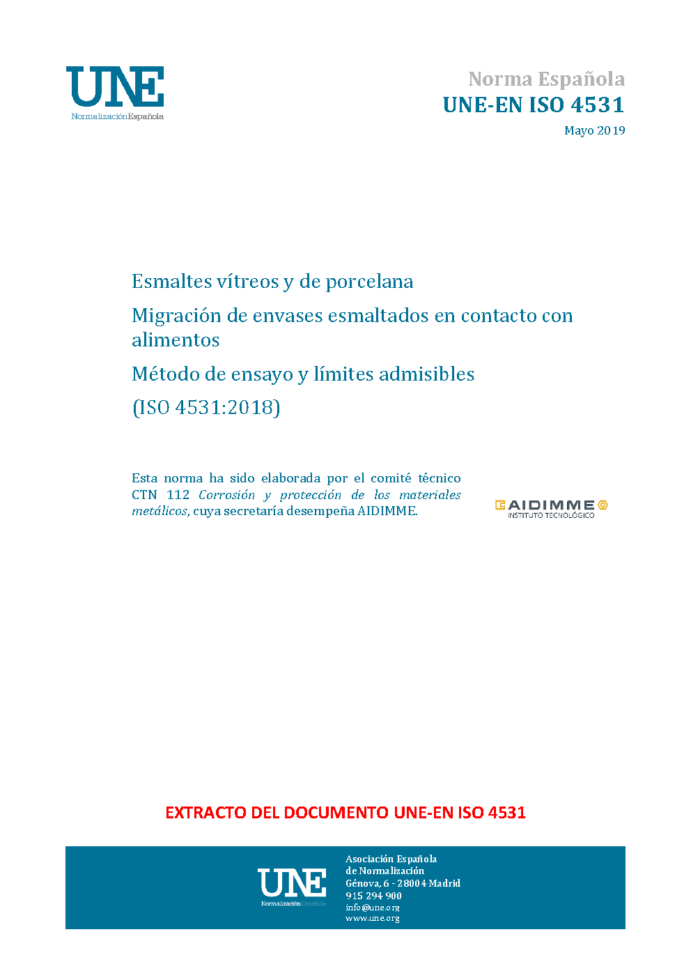 | Publisher | Asociacion Espanola de Normalizacion y Certificacion (AENOR) |