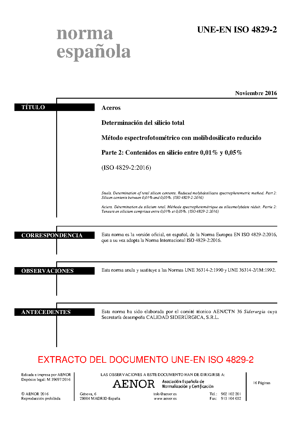 | Publisher | Asociacion Espanola de Normalizacion y Certificacion (AENOR) |