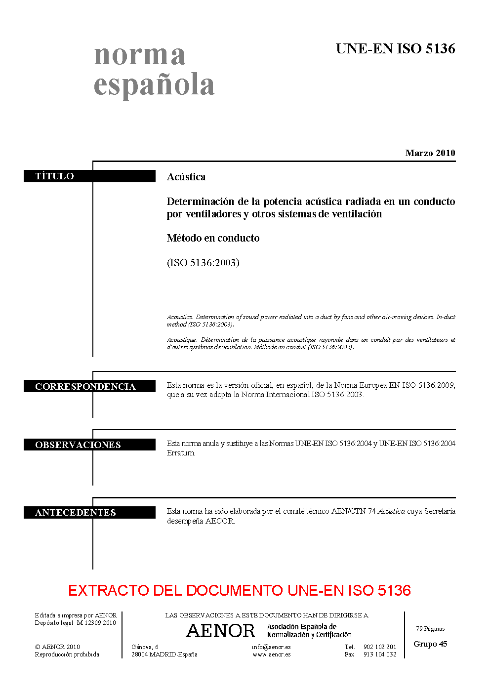UNE-EN ISO 5136:2010