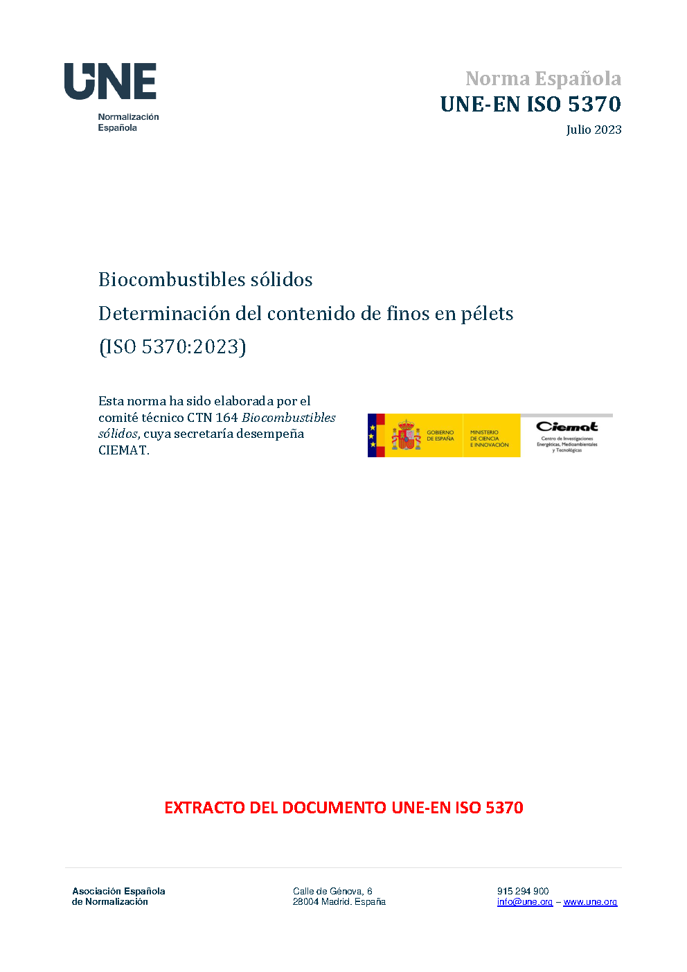 Solid biofuels - Determination of fines content in pellets (ISO 5370:2023)