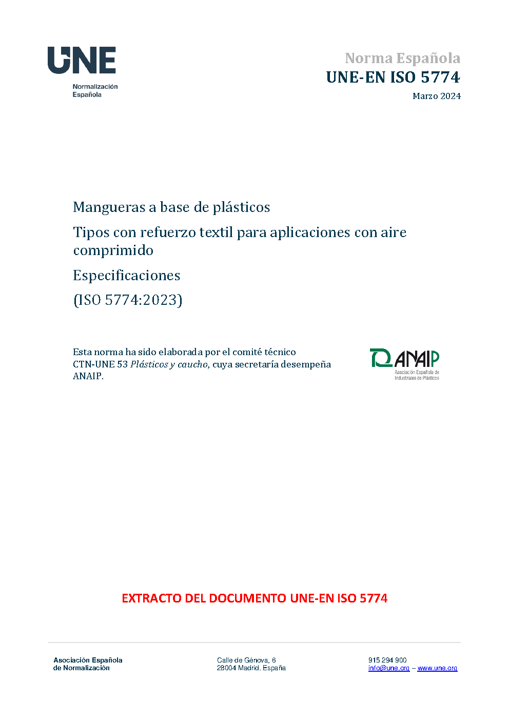 Plastics hoses - Textile-reinforced types for compressed-air applications - Specification (ISO 5774:2016)