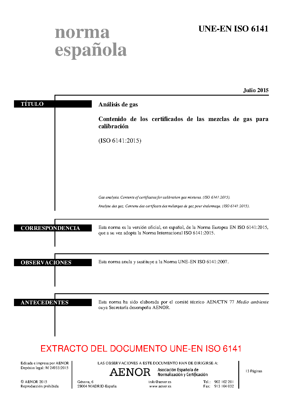 | Publisher | Asociacion Espanola de Normalizacion y Certificacion (AENOR) |