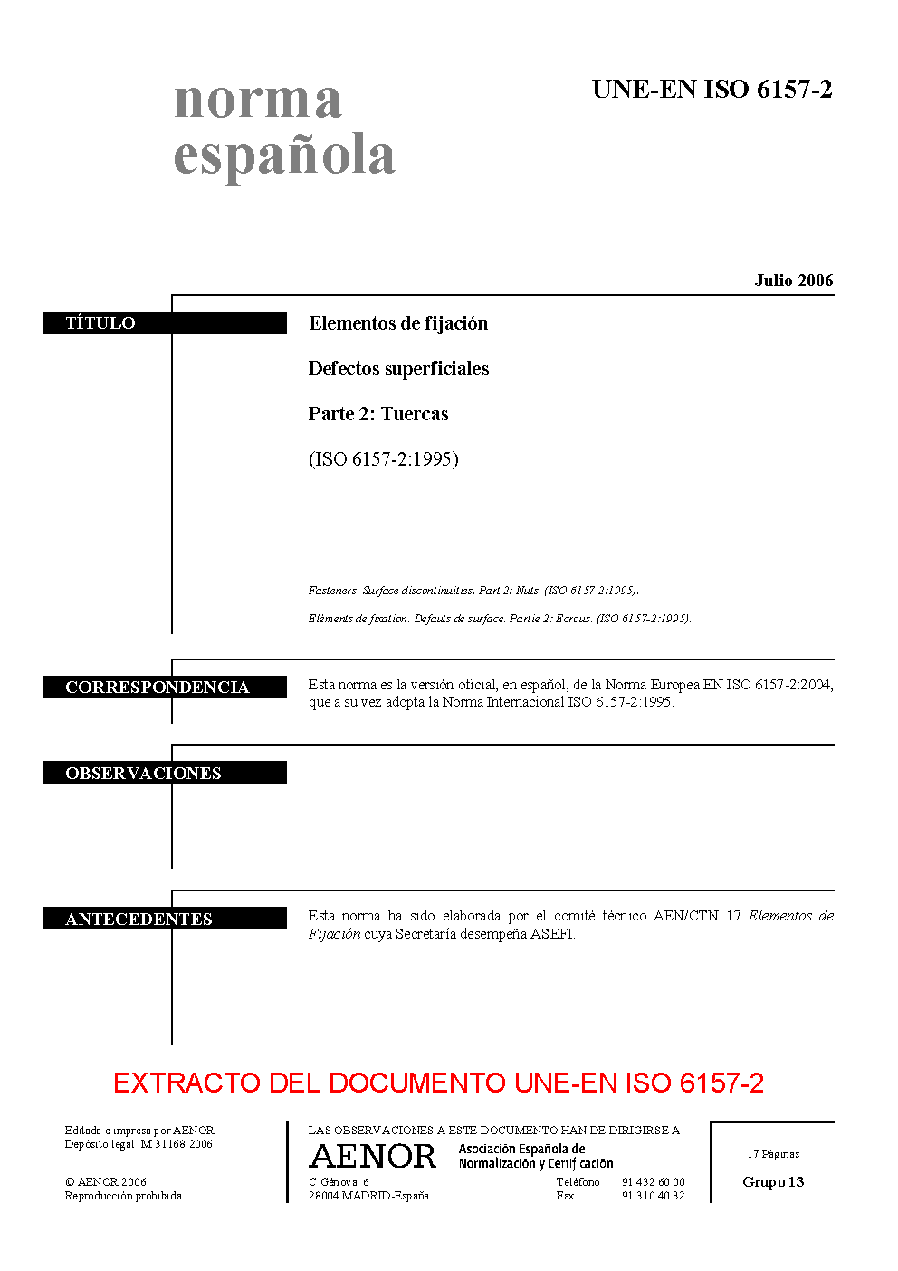| Publisher | Asociacion Espanola de Normalizacion y Certificacion (AENOR) |