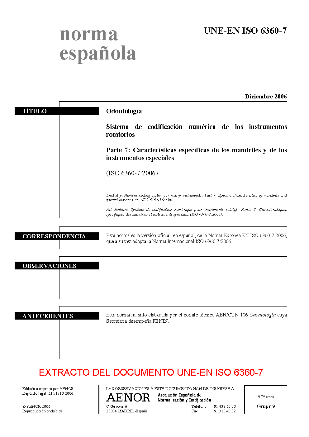 Dentistry - Number coding system for rotary instruments - Part 7: Specific characteristics of mandrels and special instruments (ISO 6360-7:2006)