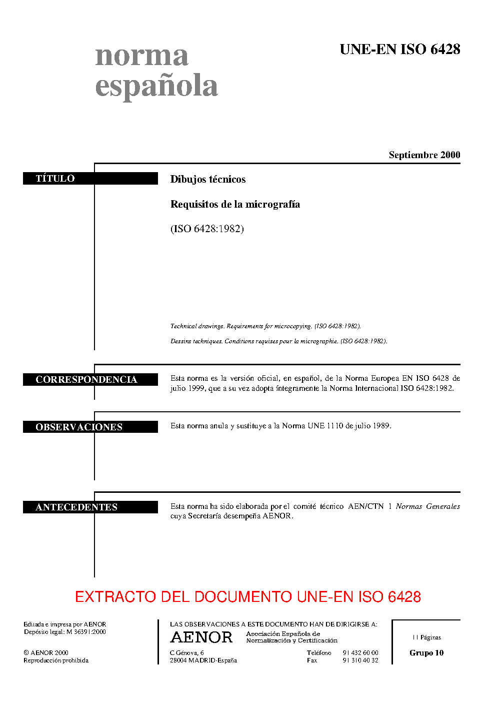 TECHNICAL DRAWINGS. REQUIREMENTS FOR MICROCOPYING (ISO 6428:1982)