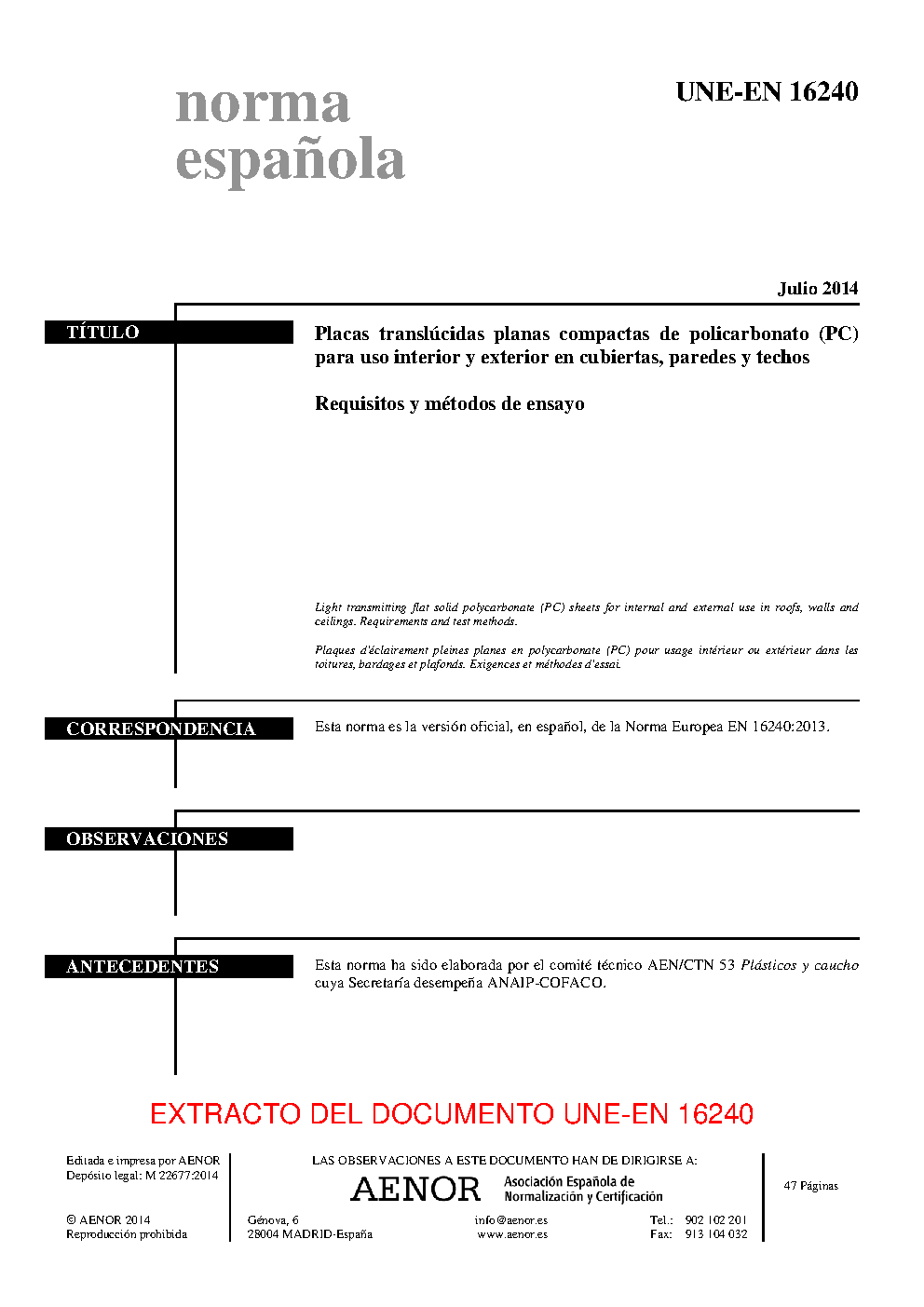 | Publisher | Asociacion Espanola de Normalizacion y Certificacion (AENOR) |