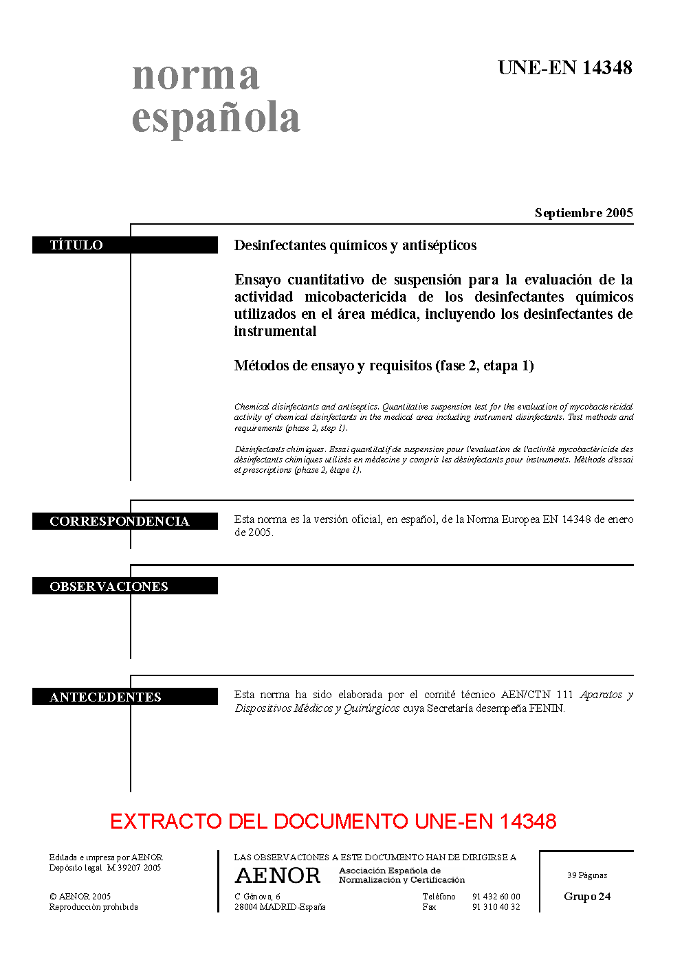 | Publisher | Asociacion Espanola de Normalizacion y Certificacion (AENOR) |