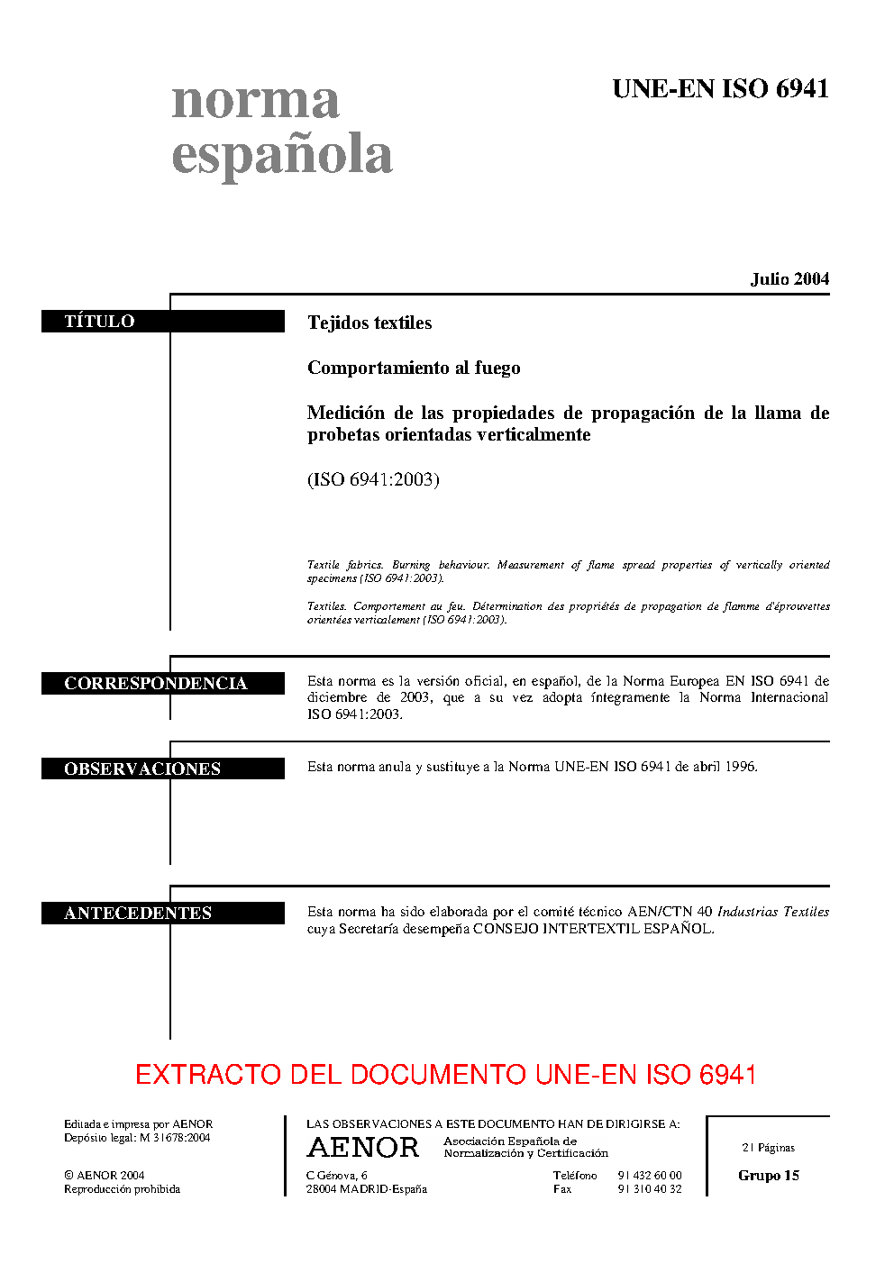 UNE-EN ISO 6941:2004 (R2008)