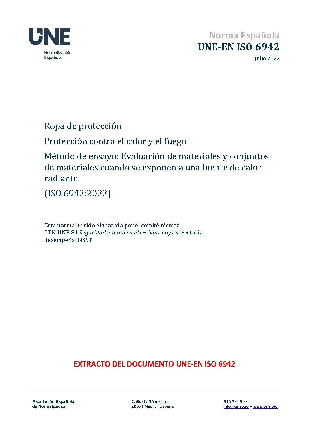 Protective clothing -- Protection against heat and fire -- Method of test: Evaluation of materials and material assemblies when exposed to a source of radiant heat. (ISO 6942:2002)