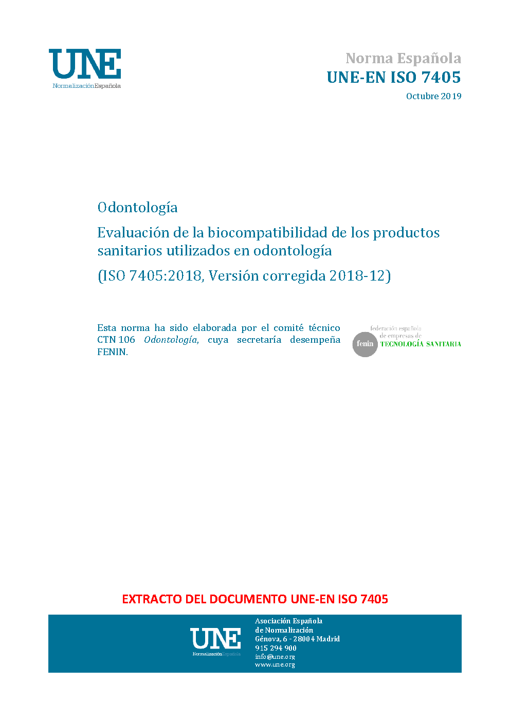 Dentistry - Evaluation of biocompatibility of medical devices used in dentistry (ISO 7405:2018, Corrected version 2018-12)