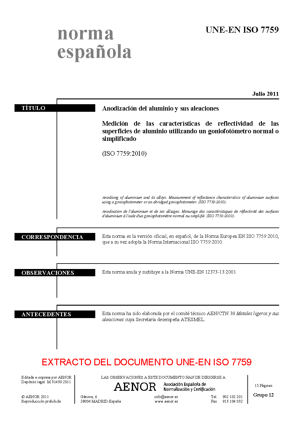 | Publisher | Asociacion Espanola de Normalizacion y Certificacion (AENOR) |
