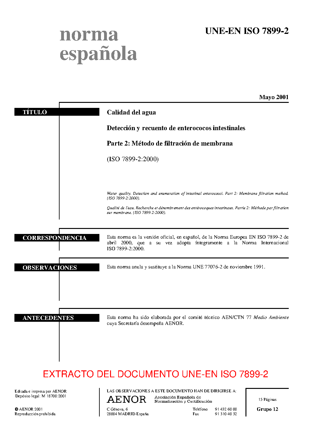 UNE-EN ISO 7899-2:2001 ERRATUM:2010