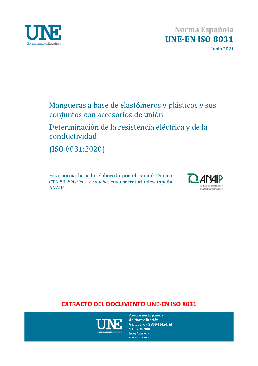 Rubber and plastics hoses and hose assemblies - Determination of electrical resistance and conductivity (ISO 8031:2020)