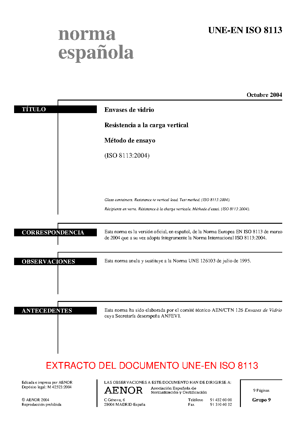 | Publisher | Asociacion Espanola de Normalizacion y Certificacion (AENOR) |