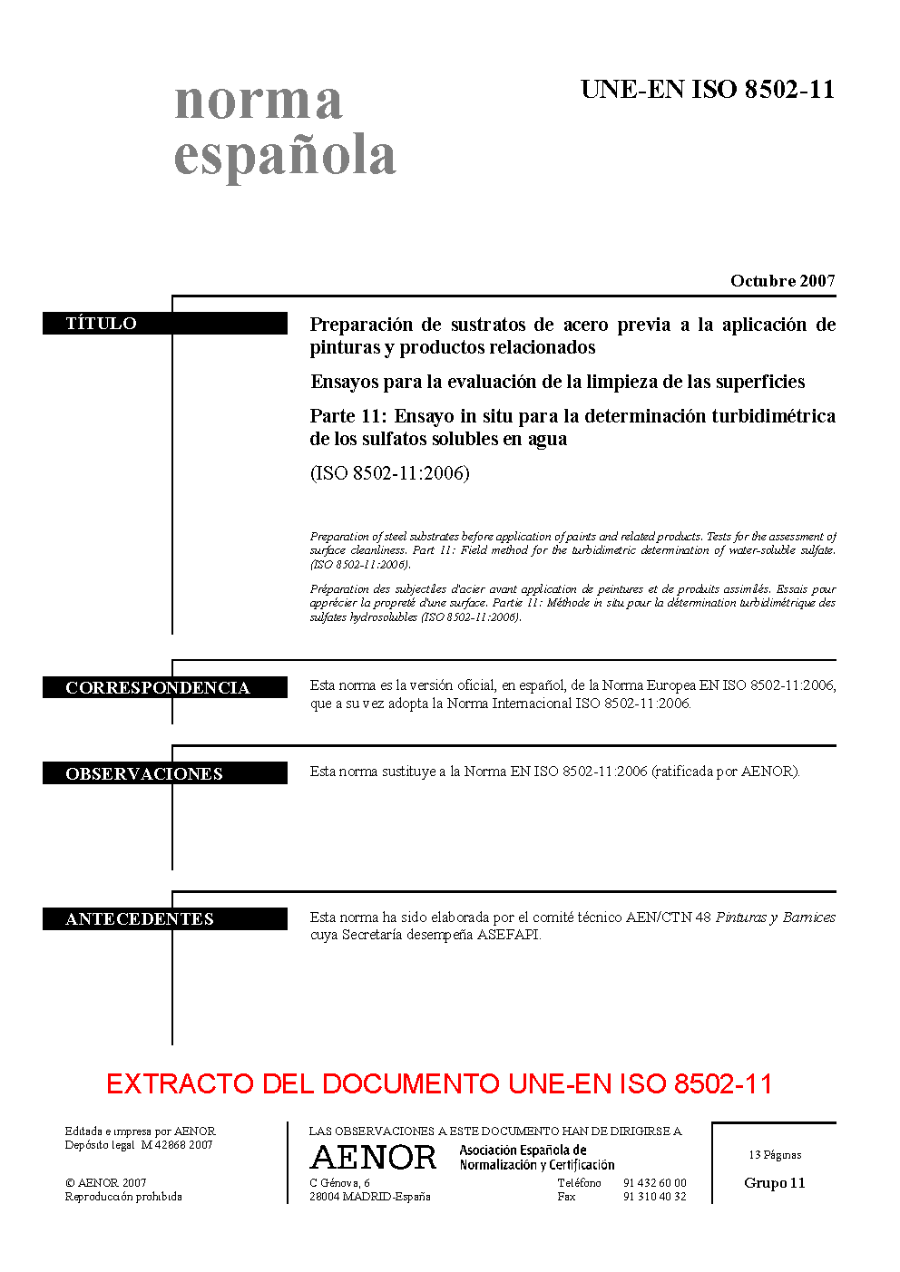 UNE-EN ISO 8502-11:2007
