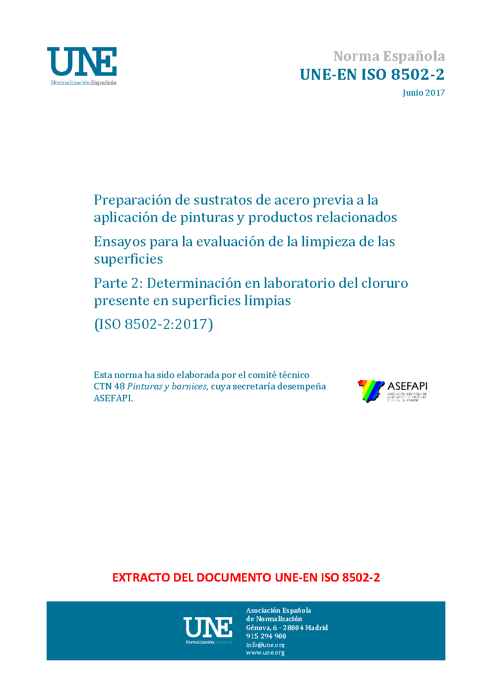Preparation of steel substrates before application of paints and related products - Tests for the assessment of surface cleanliness - Part 2: Laboratory determination of chloride on cleaned surfaces (ISO 8502-2:2017)