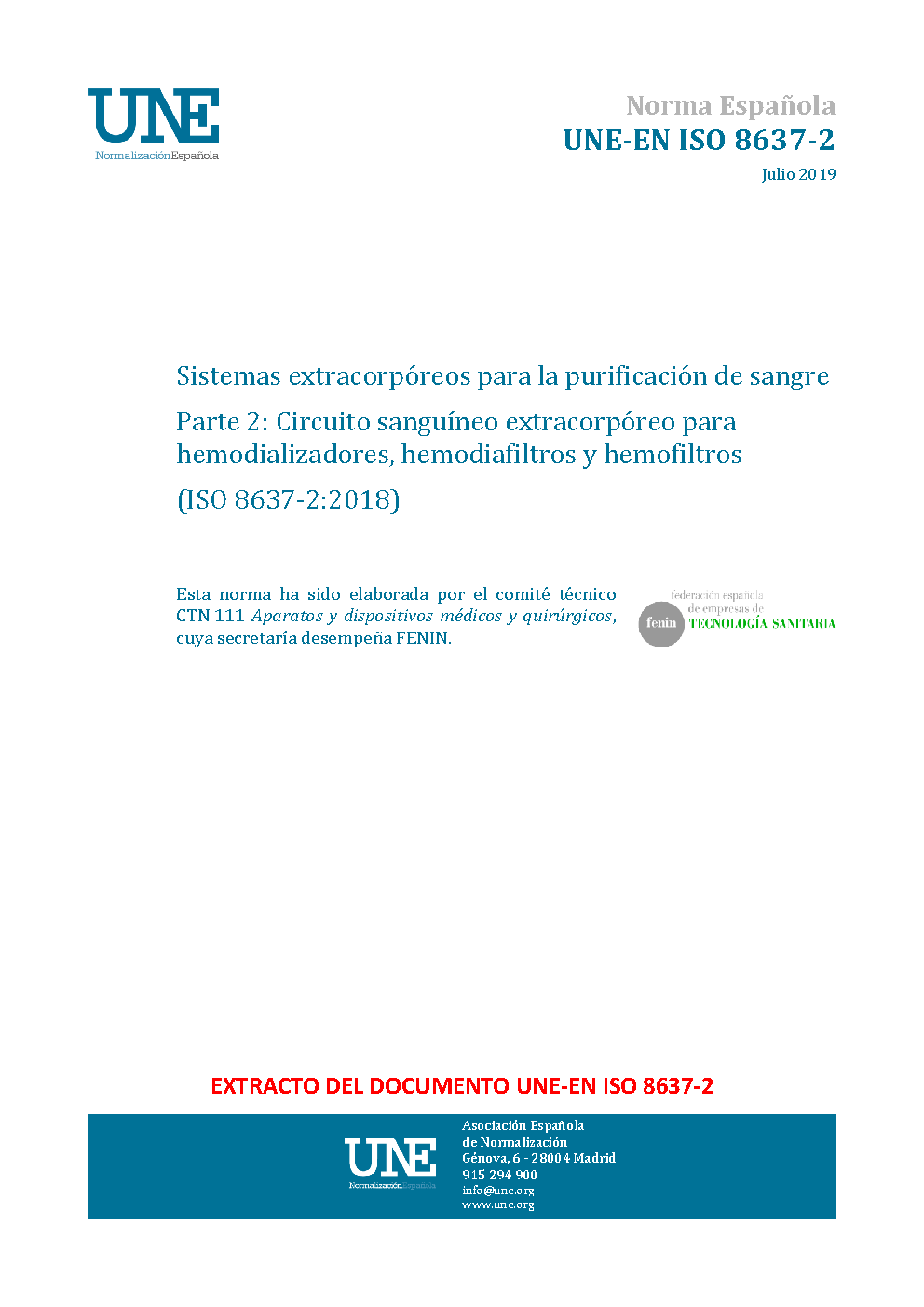 Extracorporeal systems for blood purification - Part 2: Extracorporeal blood circuit for haemodialysers, haemodiafilters and haemofilters (ISO 8637-2:2018)