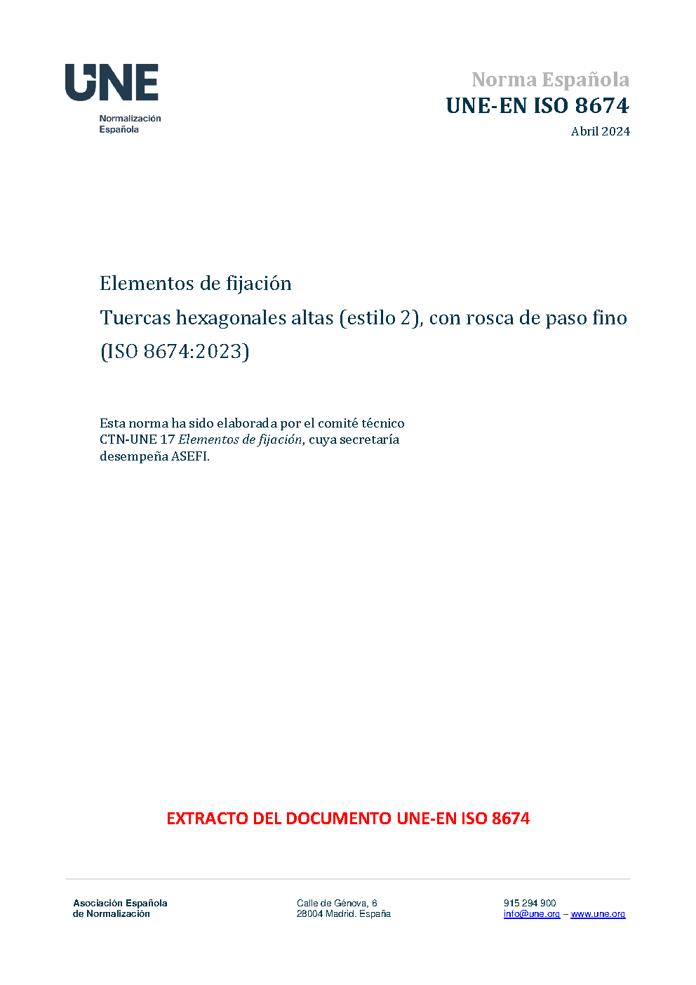 | Publisher | Asociacion Espanola de Normalizacion y Certificacion (AENOR) |