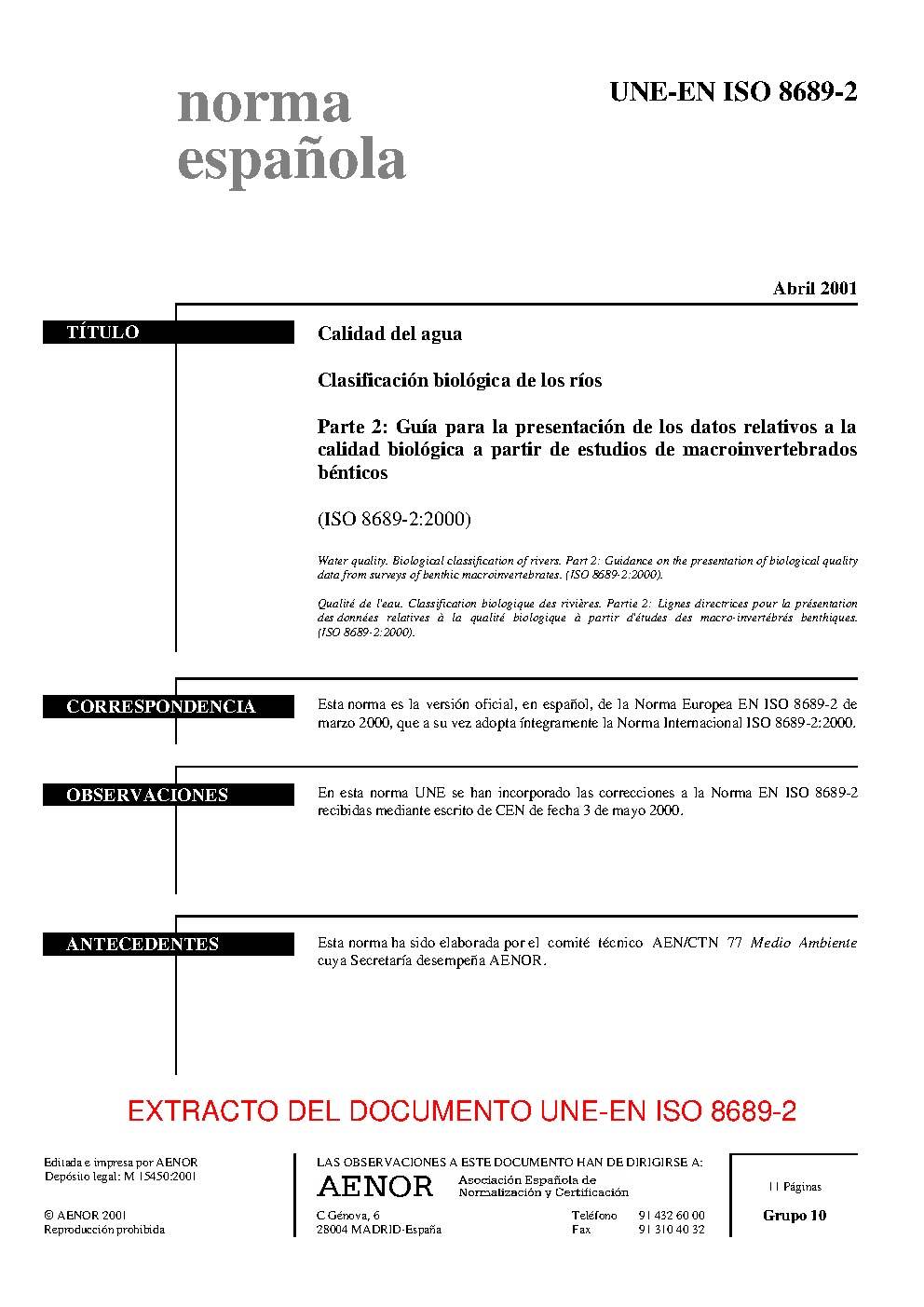 | Publisher | Asociacion Espanola de Normalizacion y Certificacion (AENOR) |