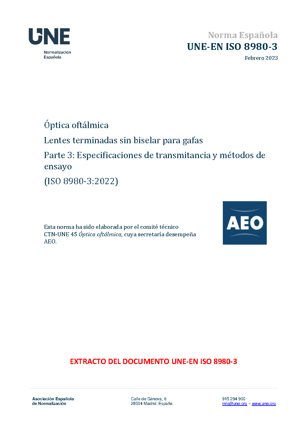 | Publisher | Asociacion Espanola de Normalizacion y Certificacion (AENOR) |