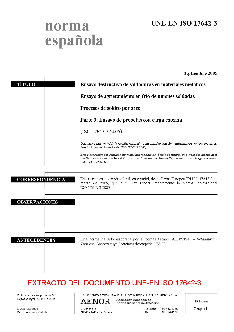 | Publisher | Asociacion Espanola de Normalizacion y Certificacion (AENOR) |
