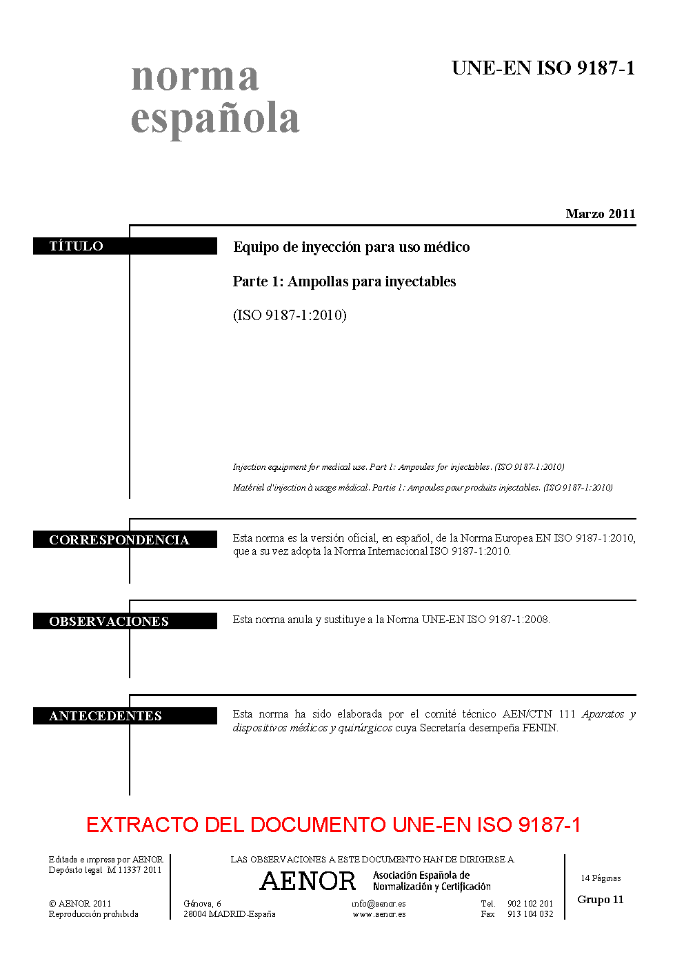 | Publisher | Asociacion Espanola de Normalizacion y Certificacion (AENOR) |