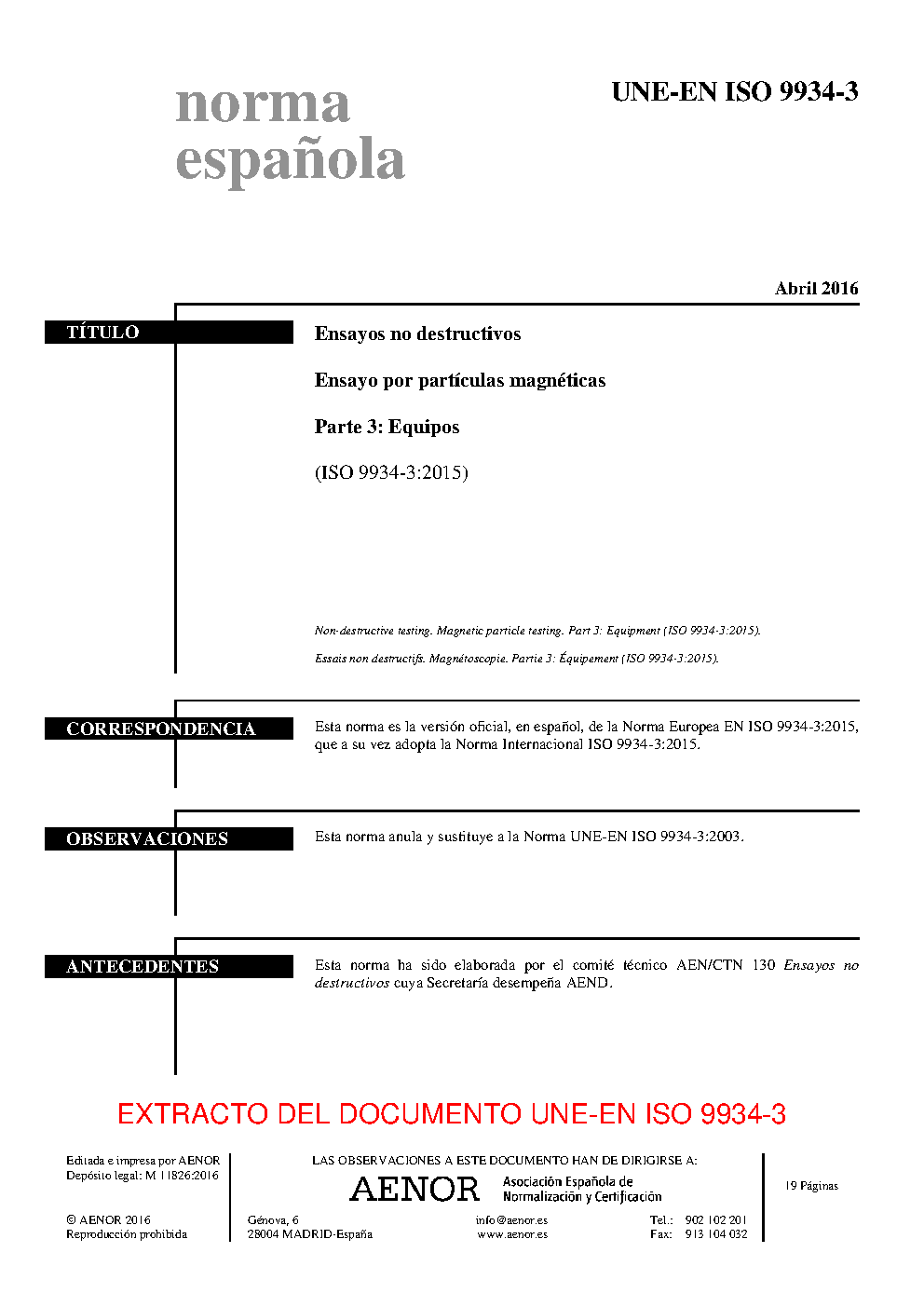 | Publisher | Asociacion Espanola de Normalizacion y Certificacion (AENOR) |