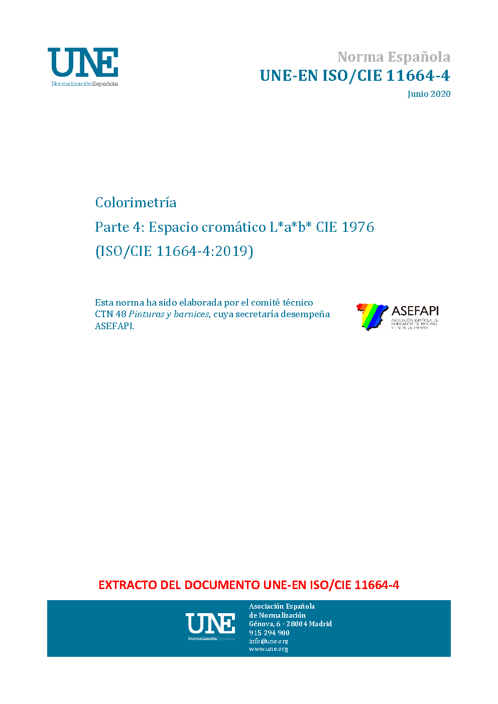 Colorimetry - Part 4: CIE 1976 L*a*b* colour space (ISO/CIE 11664-4:2019)